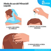 Aplicar 1 ml (con el gotero incluido) dos veces al día sobre el cuero cabelludo seco, en la zona con pérdida de cabello.